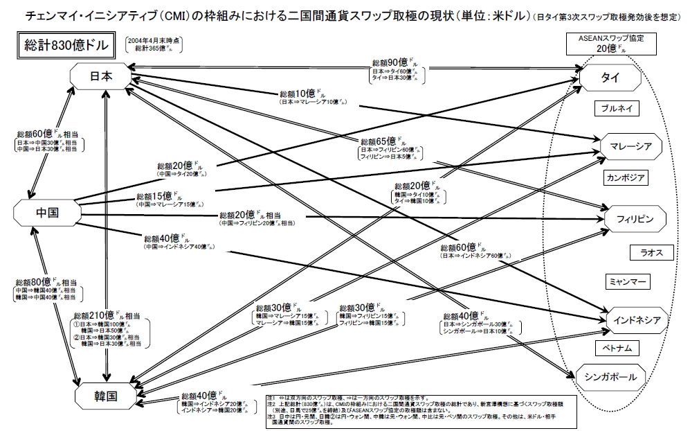 では、チェンマイ・イニシアチブ(CMI)における2国間の通貨スワップ協定の規模拡充