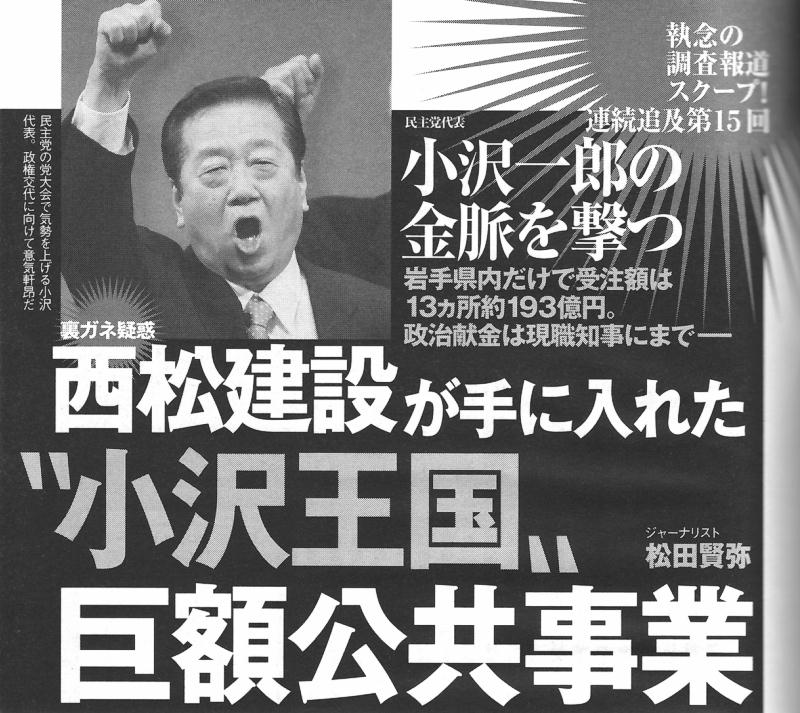 一郎元首相が先週、麻生首相への非難を公言した郵政民営化に関すること、および今週、