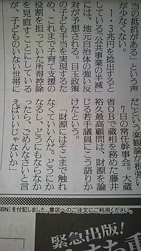要は新聞社を税金で優遇するなり保護しろという事の様ですが今度はマスコミにも「ばら撒け」と暗に主張している訳なのでしょうかね。簡単に「足りよう」とか言ってしまう感覚に困惑してしまいますがやはり2ちゃんねるでは批判されていた様です。