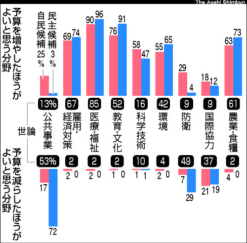 asahi.com(朝日新聞社):《朝日・東大調査》予算増に積極的、自も民も医療重視 - 政治